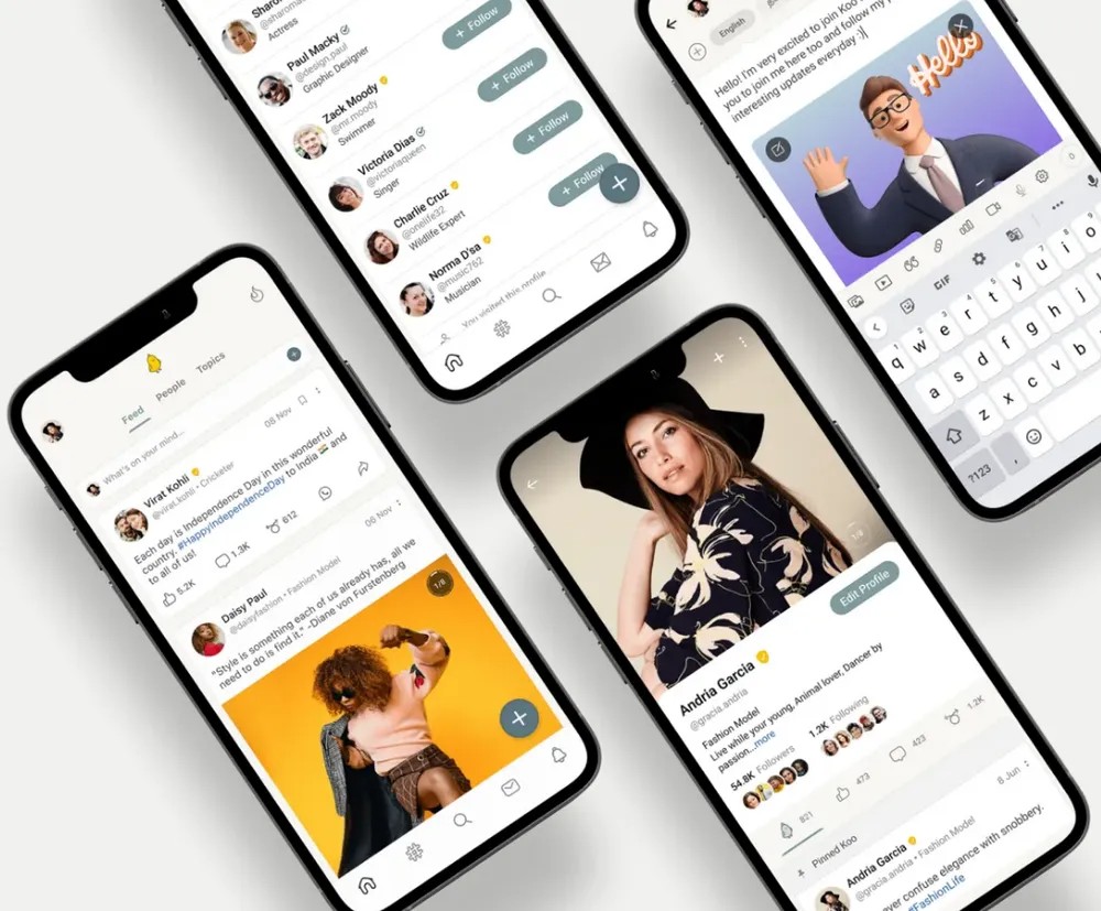 De acordo com os desenvolvedores, a plataforma tem mais de 50 milhões de downloads e mais de sete mil personalidades, entre políticos e celebridades. O mascote da Koo é um passarinho amarelo, uma clara inspiração no rival Twitter.